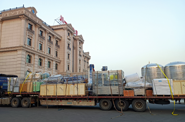 【川一股份】5000小瓶水灌裝線+500小桶水灌裝線水廠設備裝車發往棗莊市山亭區